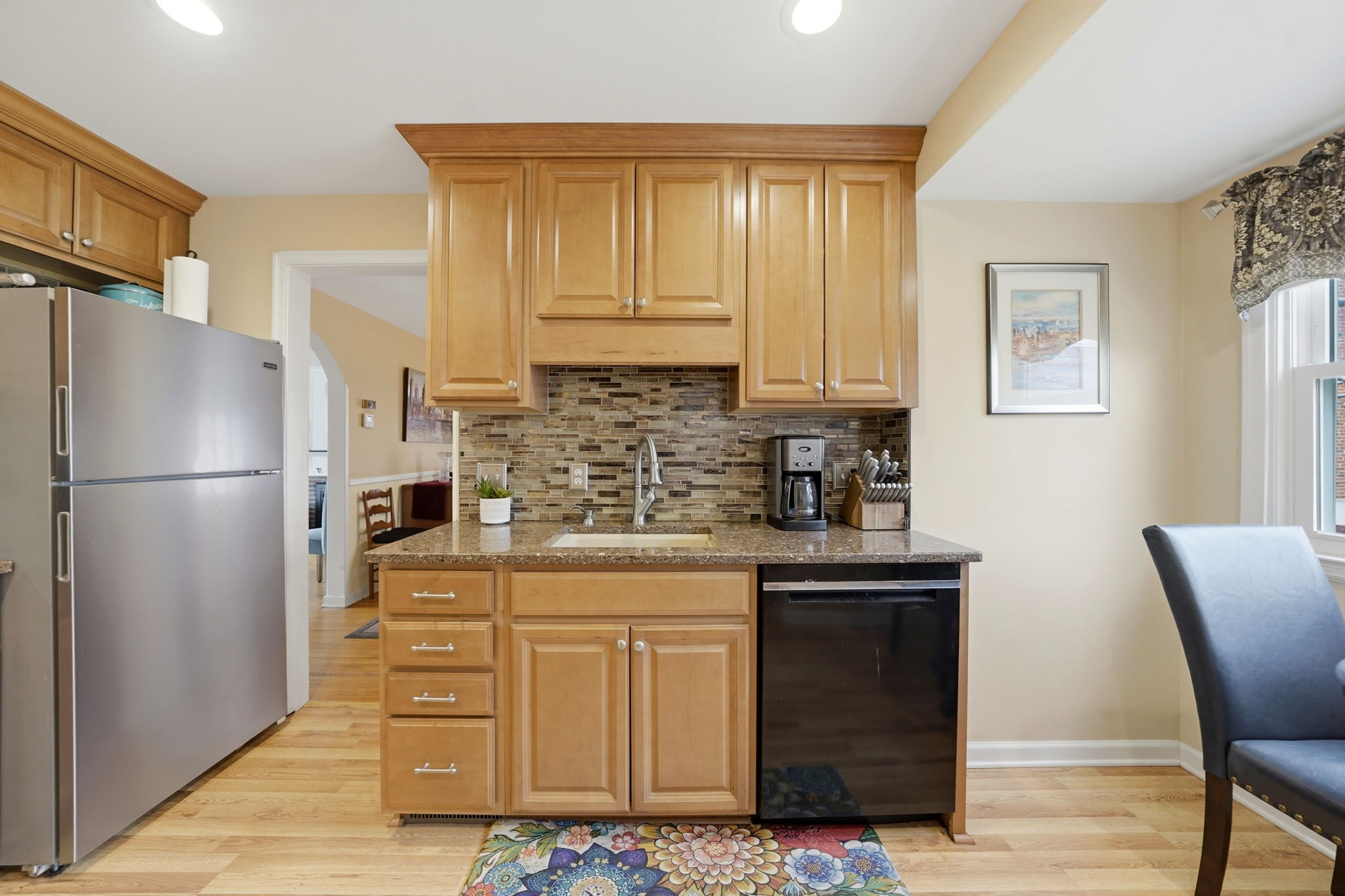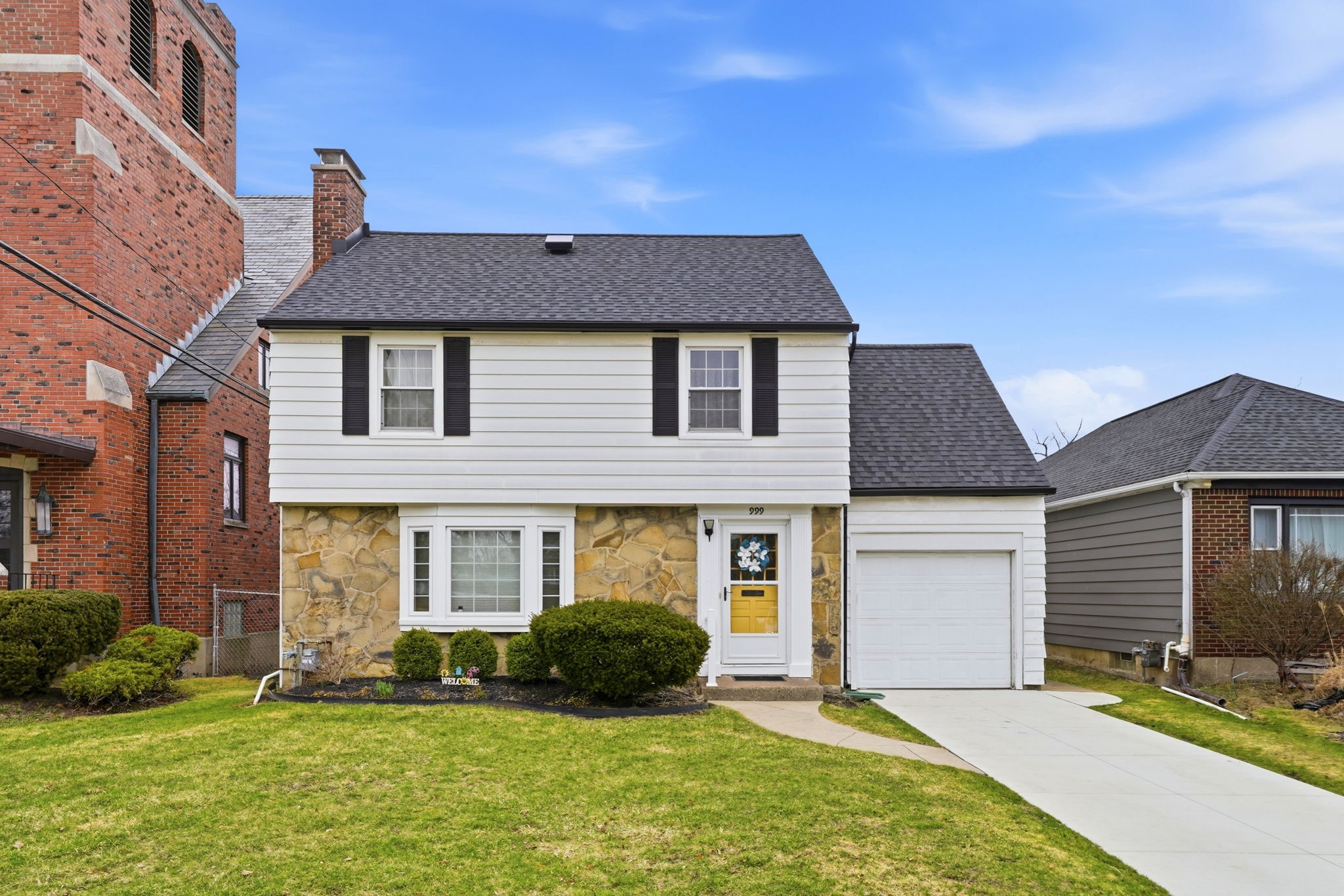 999 Colvin Blvd. Contemporary two story colonial on a tremendous, fenced yard. The roof is newer, the exterior is low maintenance, there is an attached garage and a new driveway. A tiled vestibule opens to an epic living room and formal dining room. Walls and ceilings are in great condition, there is a fireplace and 1940’s moldings and woodwork. The kitchen is newer with high quality cabinets and granite counters. Three or four bedrooms, great closets and a neutral, white tiled bathroom. Modern mechanical systems include updated electric and heating.